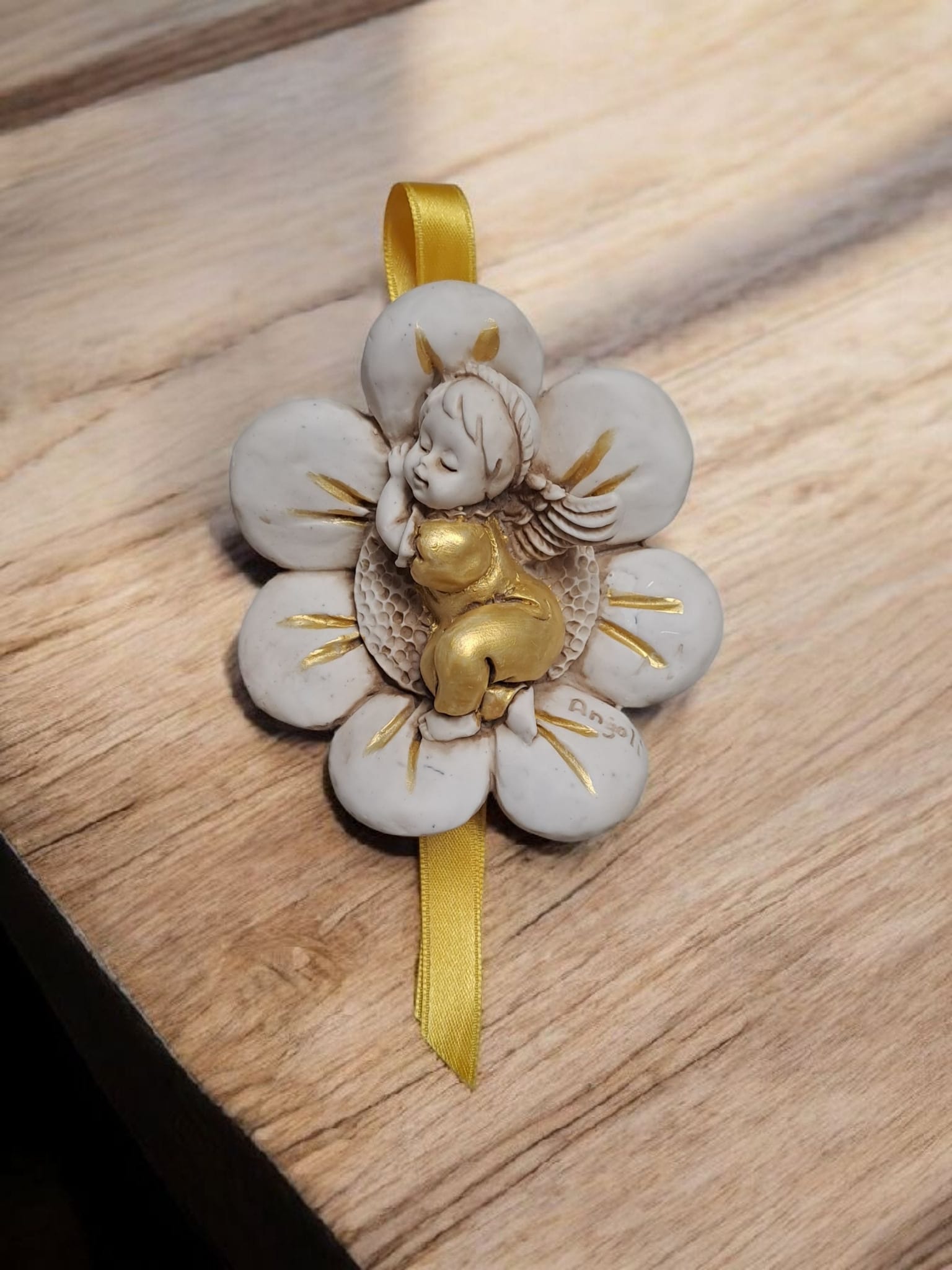 Angelo lavorato a mano in caolino cm 8 Un angelo che dorme su un fiore : dolcezza e tenerezza !!!!! Pezzo unico ma prenotabile e disponibile nel giro di 20 giorni