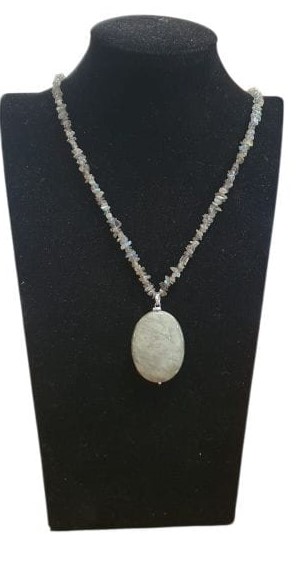 Collana artigianale con labradorite e occhio di gatto ciondolo in pietra