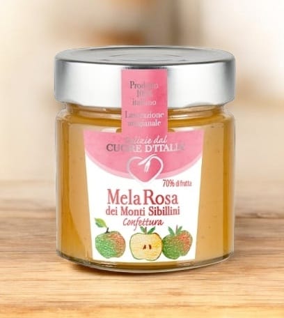 Una confettura prodotta artigianalmente con una varietà di mela tipica dei Monti Sibillini che si contraddistingue per la sua dolcezza e il suo profumo. Ingredienti :