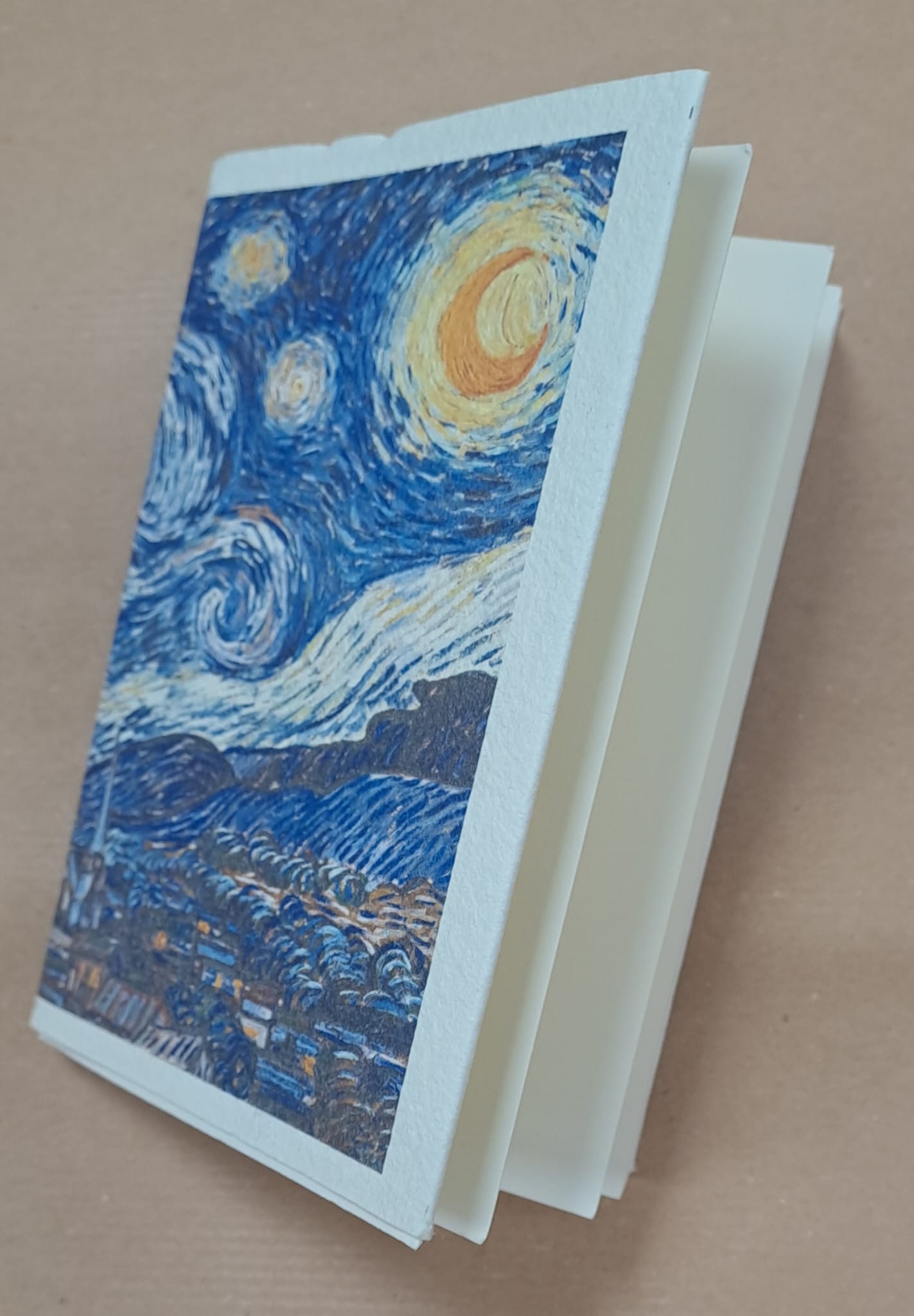 Diario fatto con carta di Fabriano lavorata a mano con copertina raffigurante l'opera di Van Gogh " Notte Stellata"