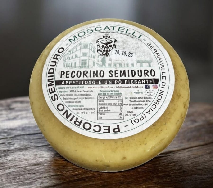 Il pecorino semiduro è un formaggio prodotto con latte ovino a pasta dura e dal sapore leggermente piccante ma non salato. Dopo un accurata selezione , le forme di pecorino fresco vengono massaggiate spesso con una miscela composta da olio di oliva e quindi rigirate continuamente: solo dopo questo accurato processo che dura circa 16/18 mesi sono pronte per le vostre tavole.
