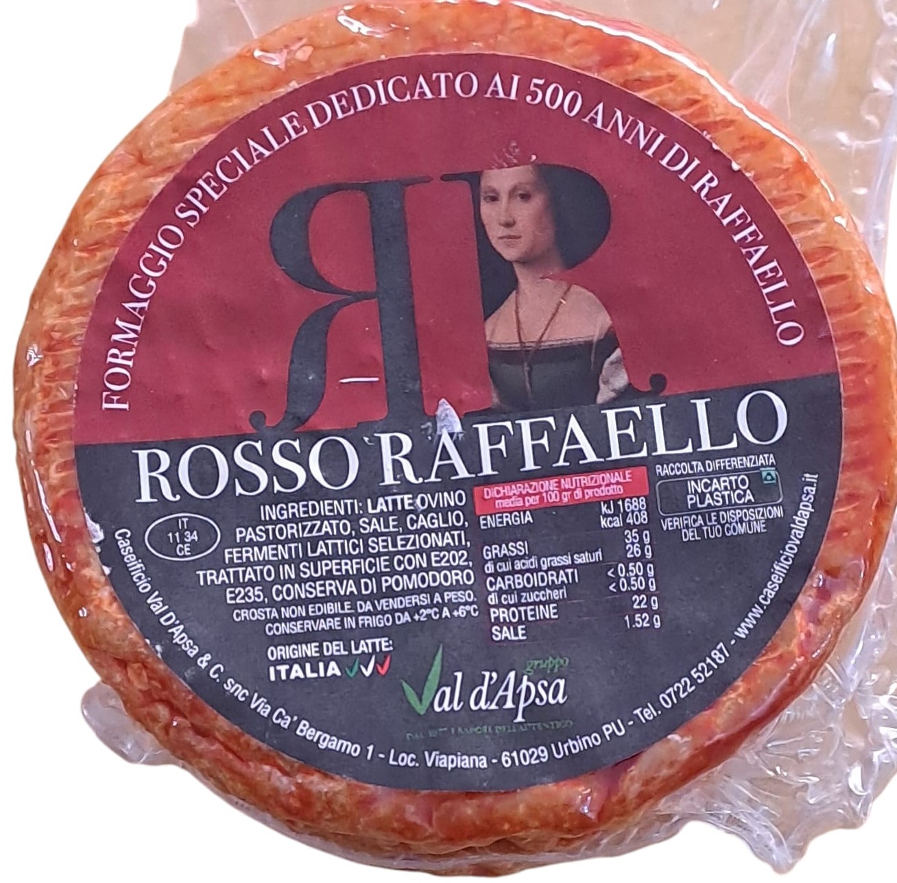 Il formaggio Rosso Raffaello è stagionato almeno 60 giorni, dalla pasta leggermente bianca e friabile . A fine stagionatura viene trattato in crosta con concentrato di pomodoro che , oltre a garantire una maggiore conservabilità del prodotto , gli conferisce il caratteristico colore rosso : colore che da' il nome al formaggio