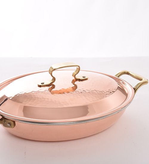 Tegame ovale con coperchio in rame